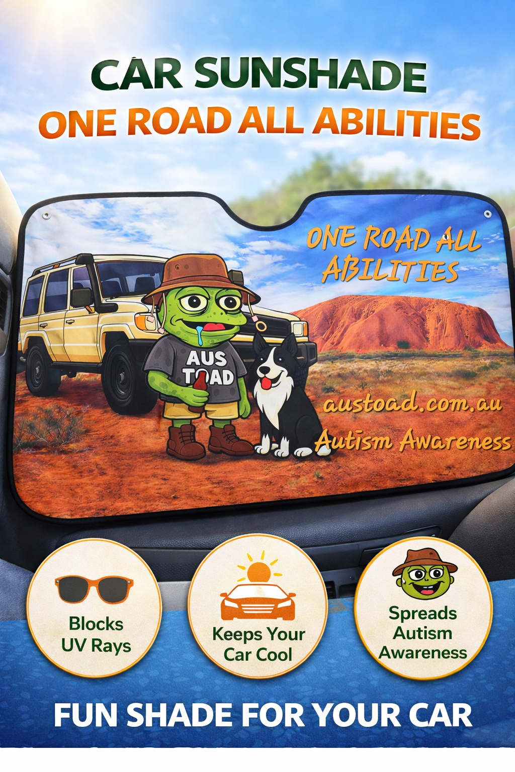 Hit the road true AUSTOAD style! This bright, fun car sunshade keeps your car cool while spreading a powerful message of inclusion and Autism Awareness.